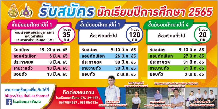 ประชาสัมพันธ์ โรงเรียนเขาชัยสนประกาศรับสมัคร นักเรียนปีการศึกษา 2565 ทั้งระดับชั้นมัธยมศึกษาปีที่ 1 และปีที่ 4