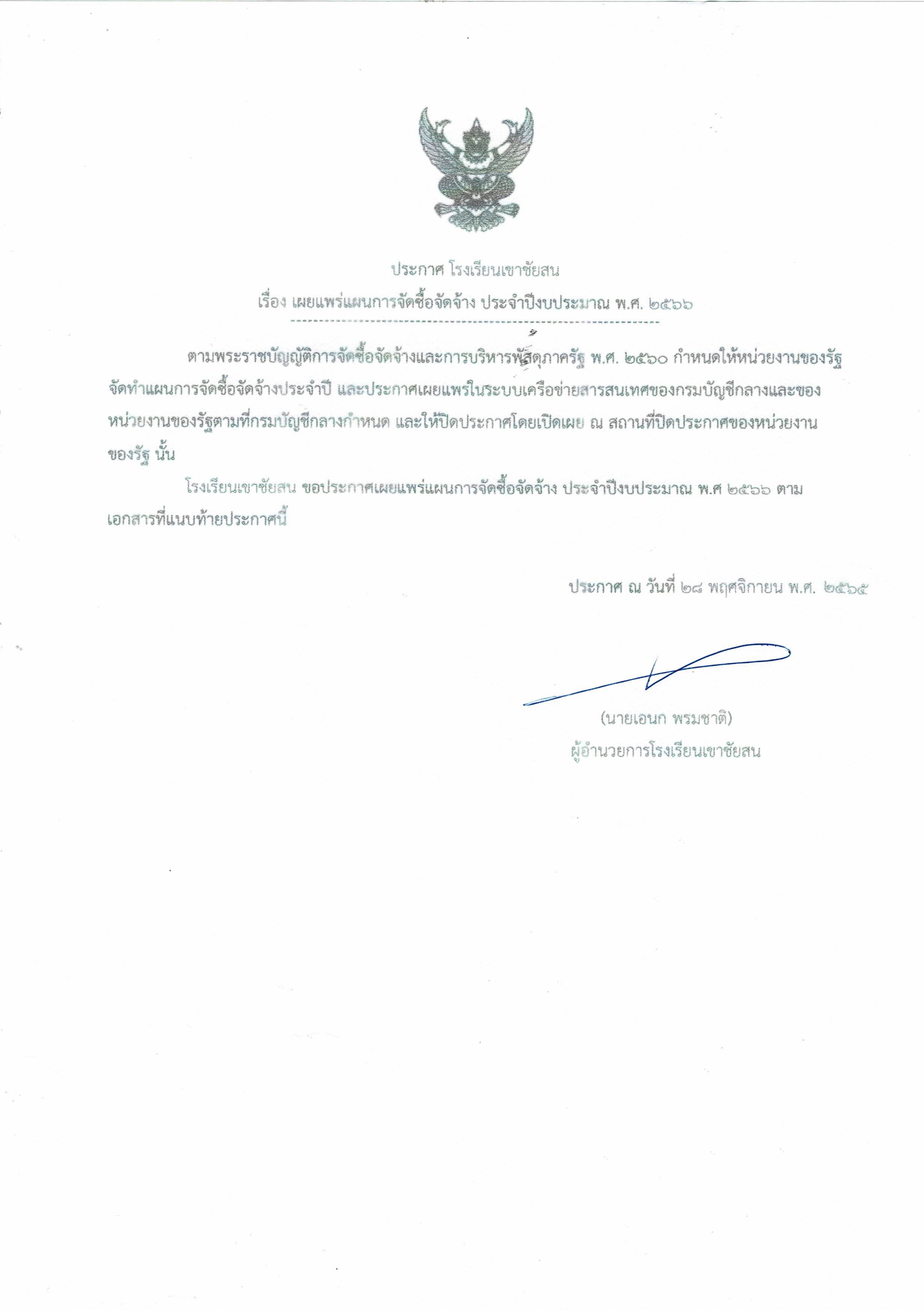 เผยแพร่แผนการจัดซื้อจัดจ้าง ประจำปีงบประมาณ พ.ศ.2566